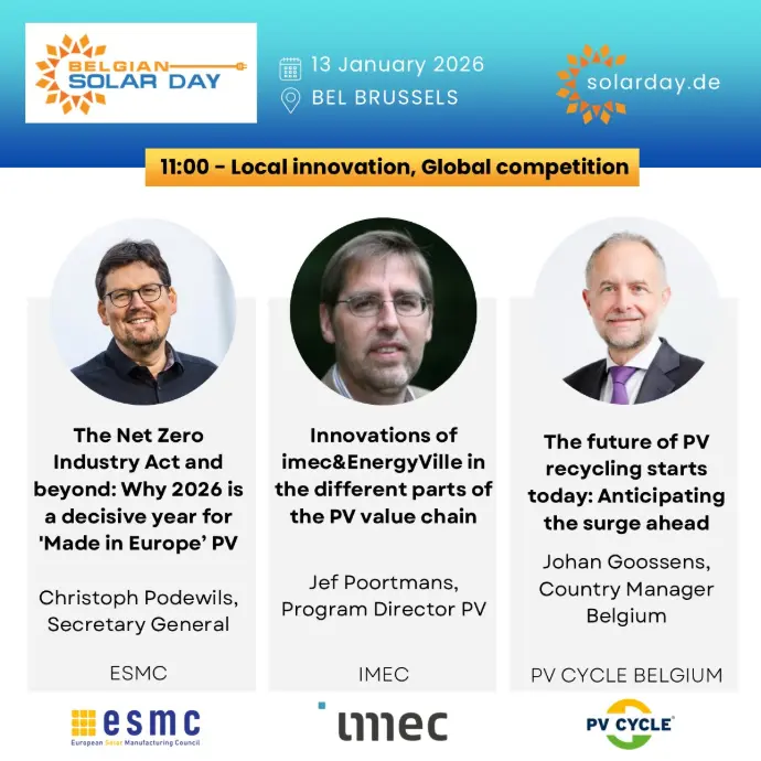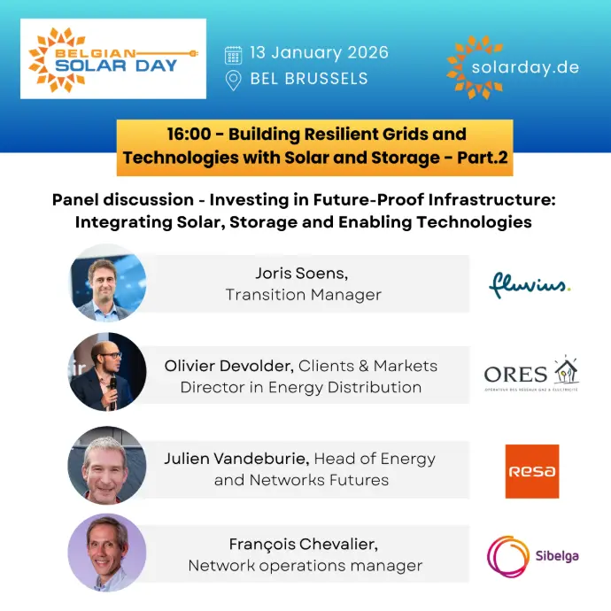 Since 2019, Belgian Solar Day has been the most important event for the photovoltaic industry in Belgium. The previous edition brought together more than 200 professionals from the sector. The event provides an overview of the latest developments, challenges and opportunities in the PV sector, with a particular focus on the role of Belgium and its regions.